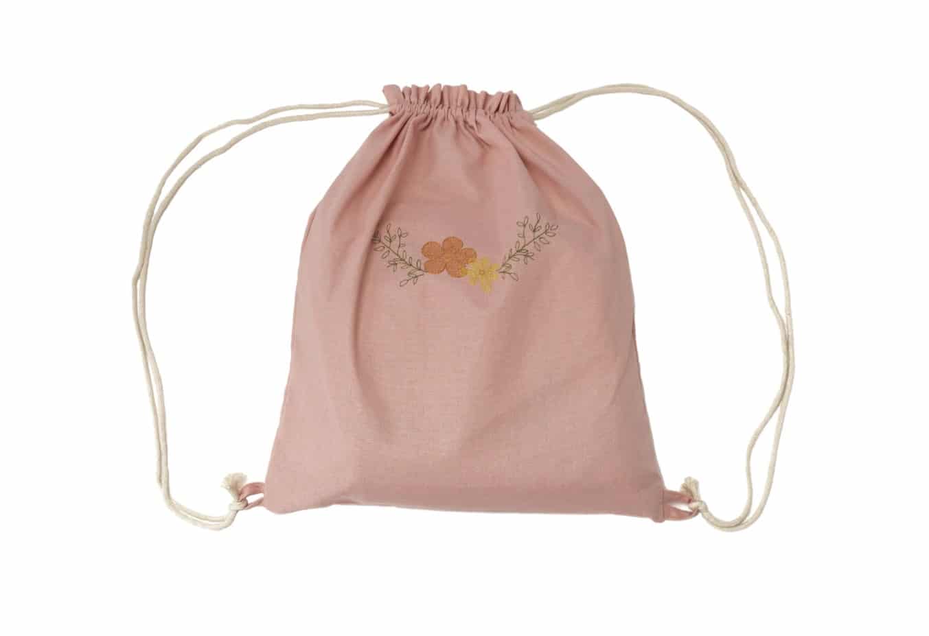 Set paturica + perna + rucsac, cu broderie, din in, pink