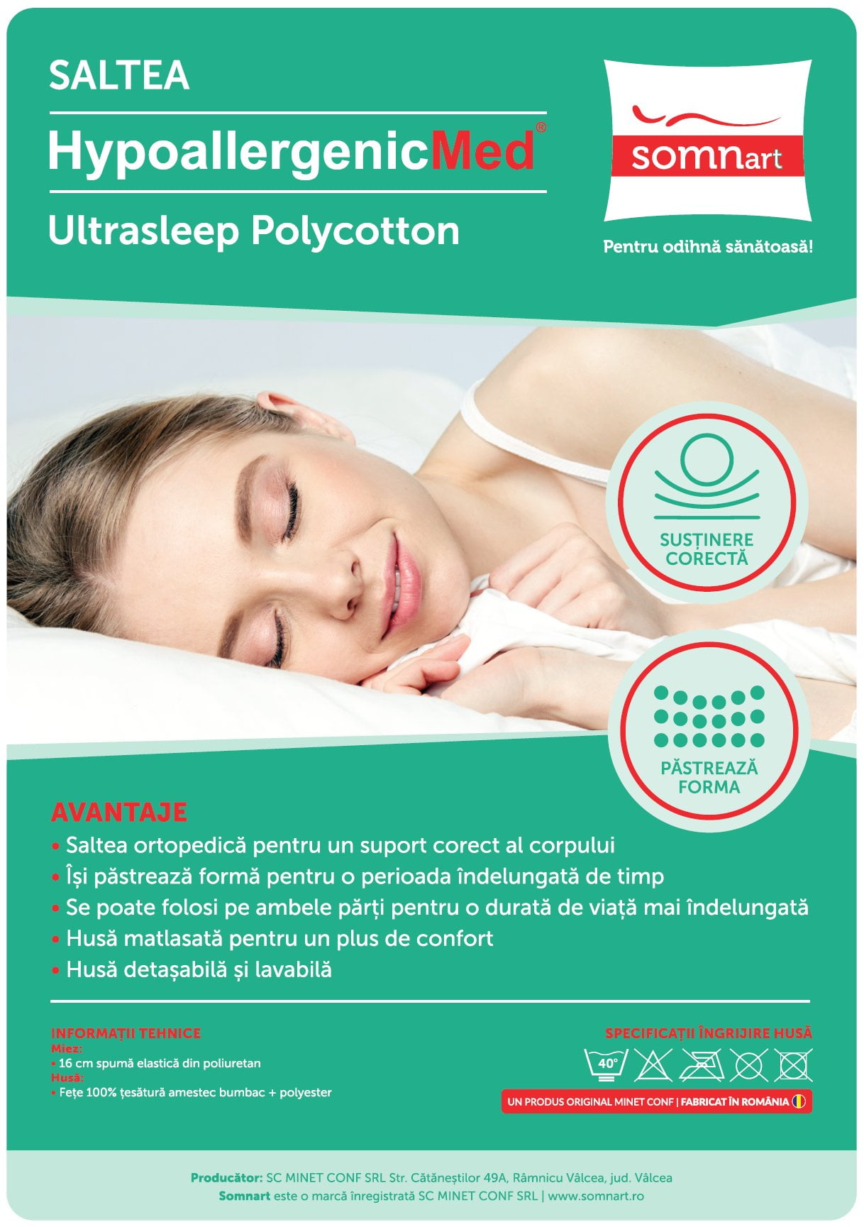 • Inaltime saltea 16 cm (+/- 1 cm)