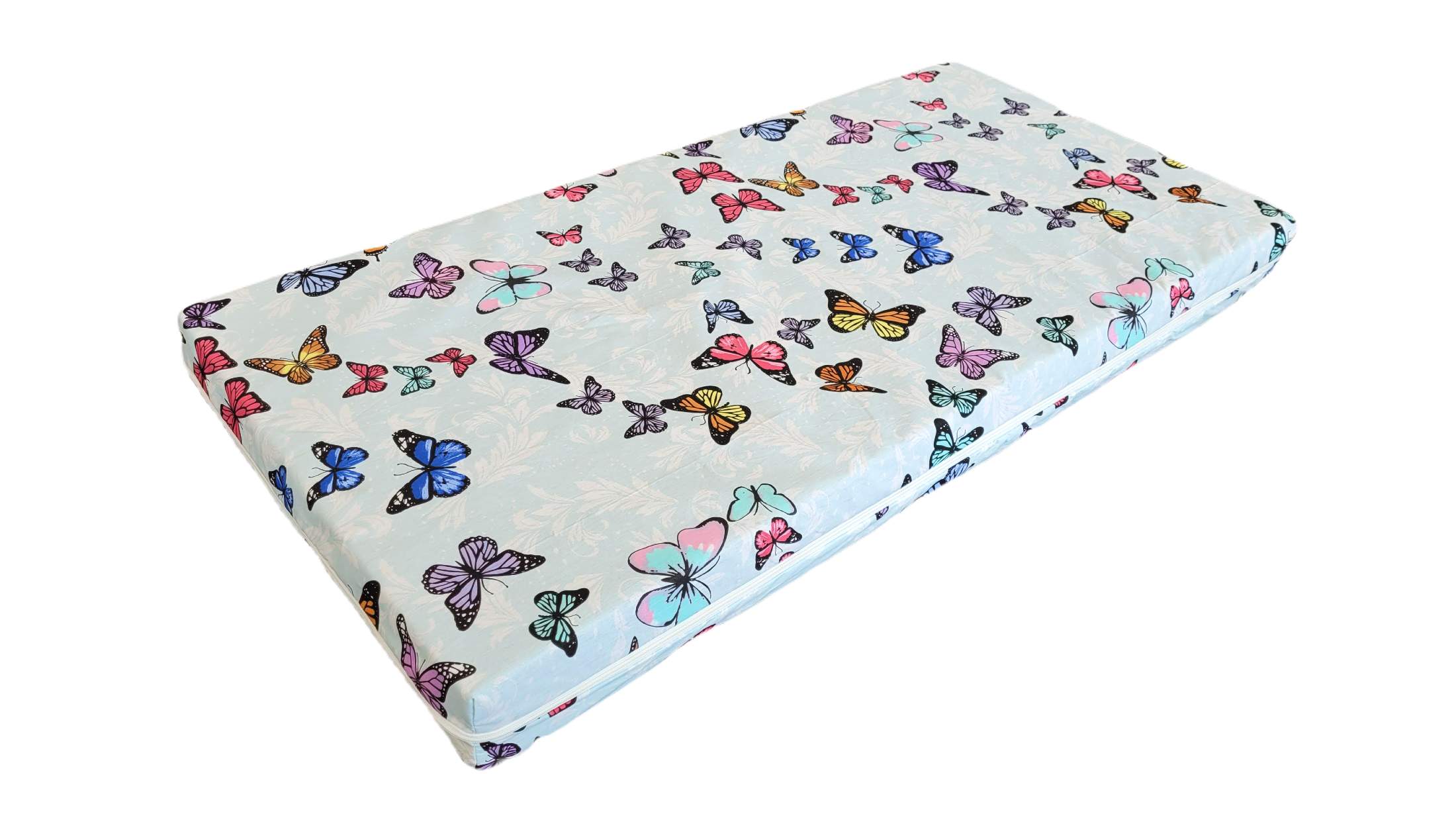 Saltea cu spumă poliuretanică Somnart Ortopedică 60×120, înălțime 10 cm, pentru bebeluși și copii, husă impermeabilă, fermitate medie, model fluturi