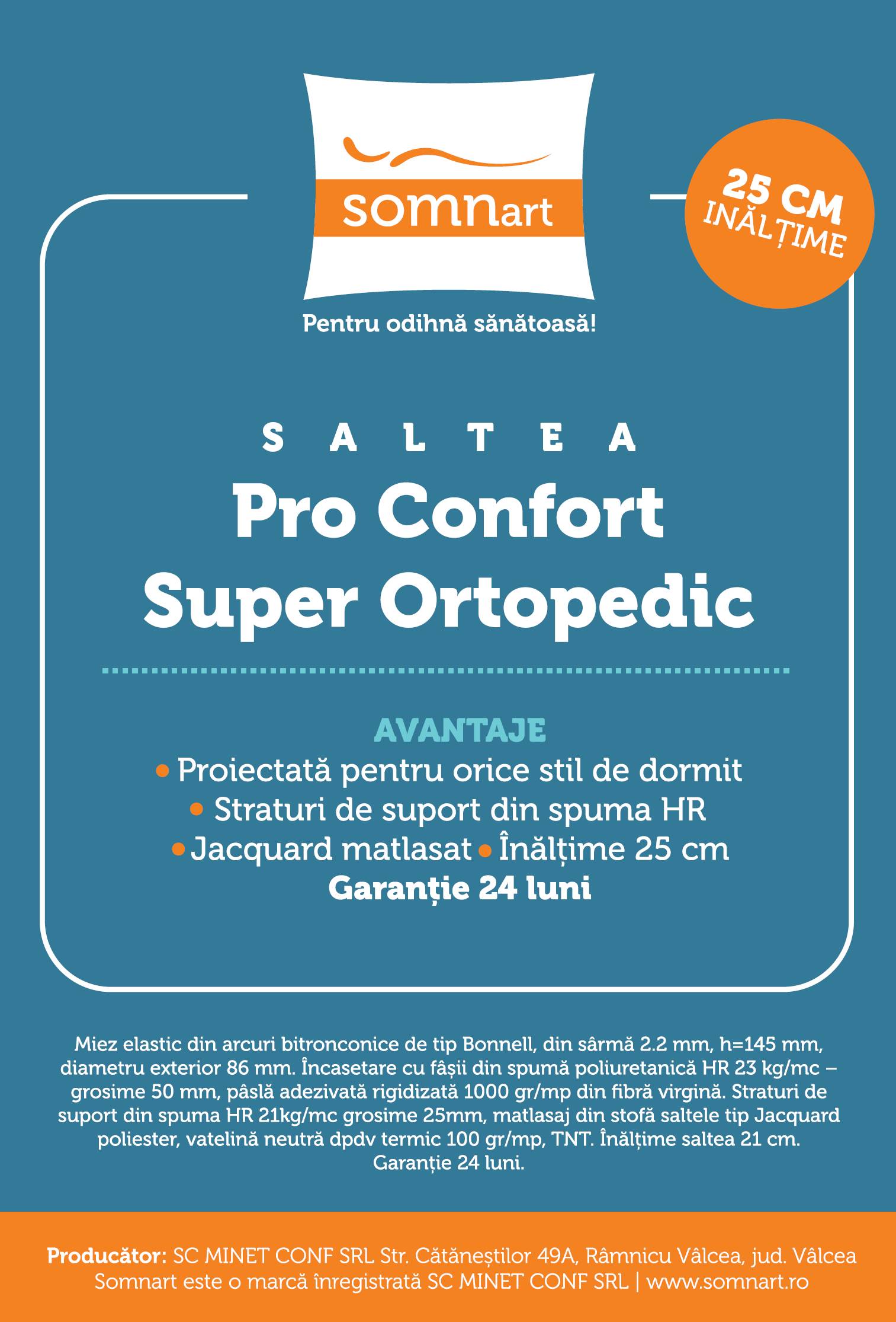 Stratul de baza de spuma poliuretanica asigura suport ortopedic cu beneficii pentru circulatie si coloana vertebrala, ajutand la relaxarea muschilor si la reducerea punctelor de presiune.